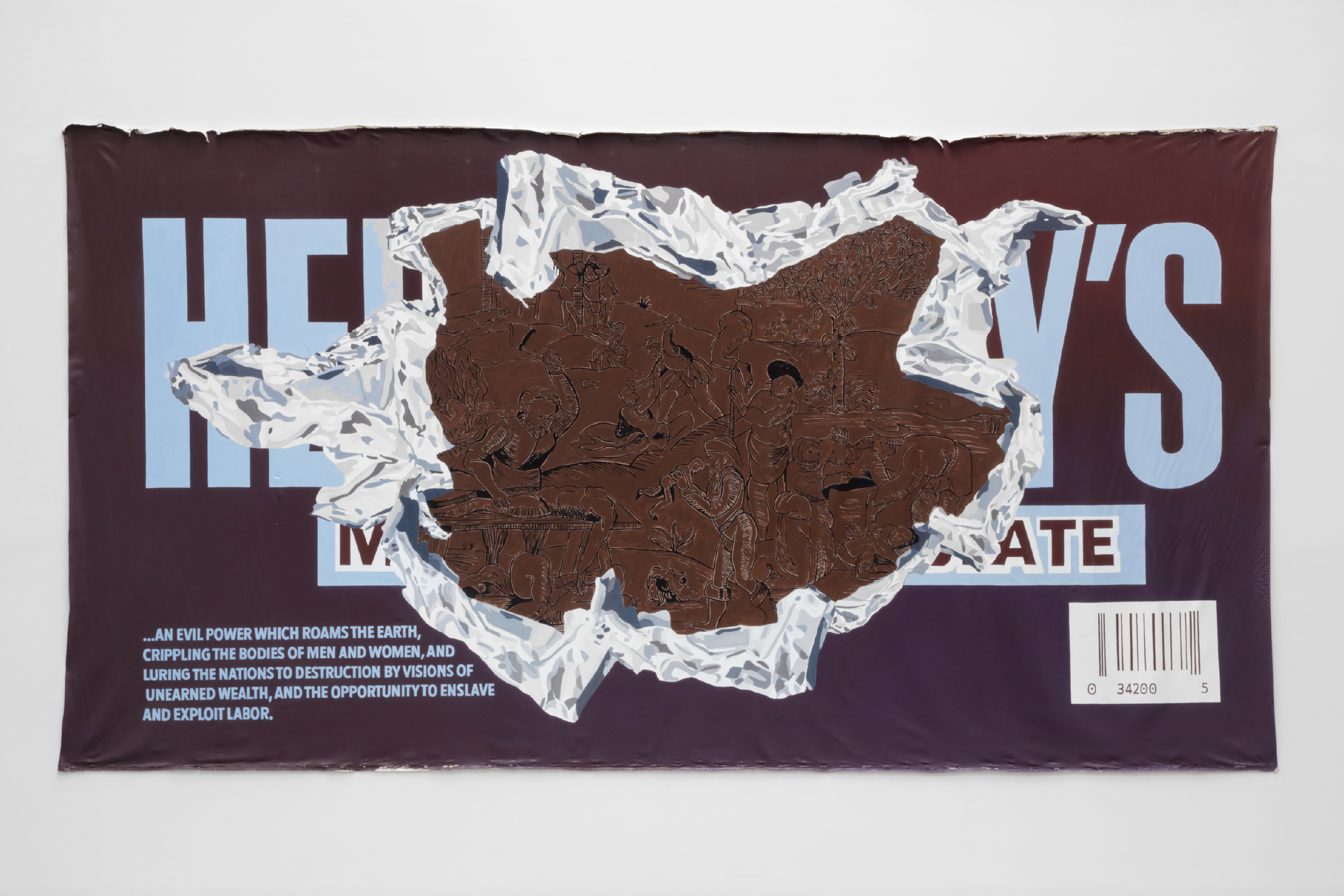 Two photographs from the artist’s action, 34 slide projection, string, lime, water, brush, metallic bucket, historical documents, postcards, map, petrified wood, petrified dinosaur bone, piece of a tire, pavement paint, rocks, compass, flowers
